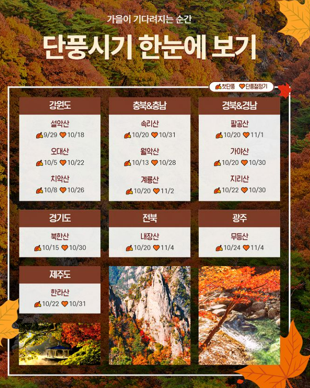 | 강원도 | 10월 중순 ~ 10월 말 |