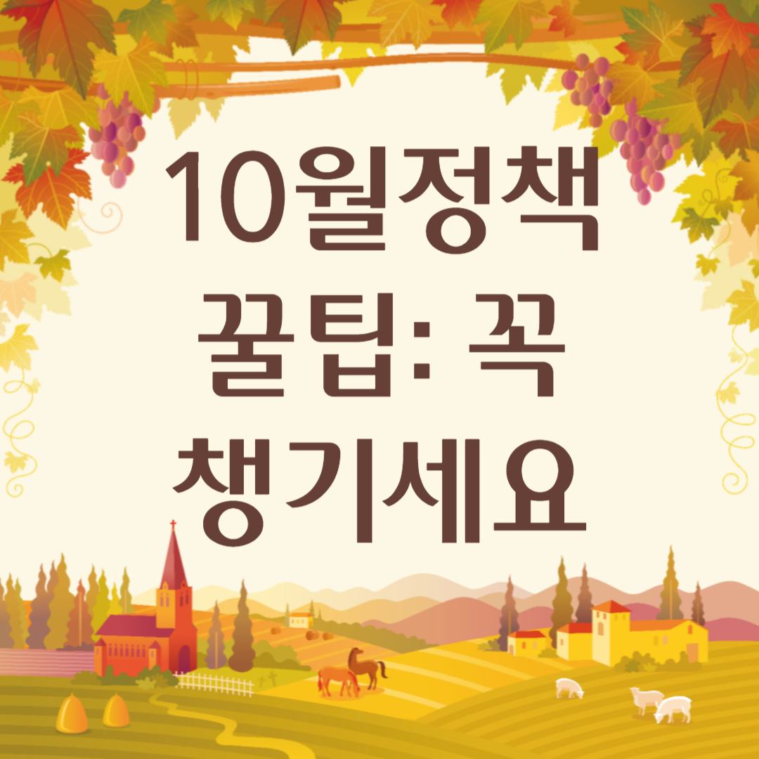 10월에 새롭게 바뀌는 정책들을 잘 활용하면 다양한 혜택을 누릴 수 있습니다. 여행, 주거, 건강까지 일상 생활에 도움이 되는 정책들을 잘 챙기세요!