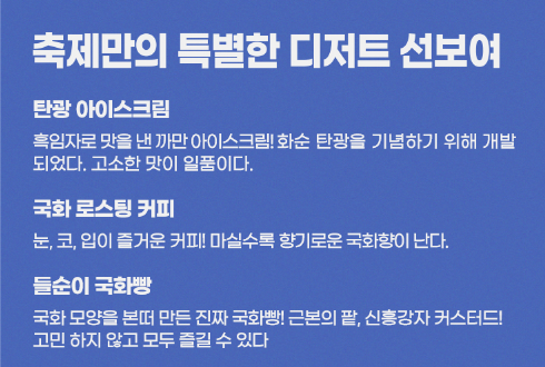 - 대중교통 이용 시: 광주광역시에서 버스로 약 1시간 정도 소요되며, 화순 버스터미널에서 축제장까지 셔틀버스가 운영됩니다.