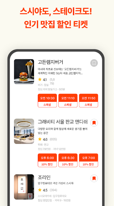 - 인기 있는 레스토랑에서 할인된 가격으로 식사를 즐길 수 있습니다. 특별한 날, 특별한 사람과 함께하는 자리에서도 합리적인 가격으로 예약이 가능합니다.