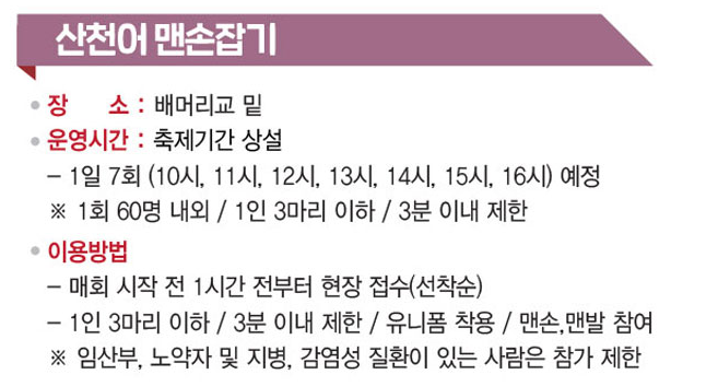 - 산천어 담는 채집봉투는 운영부스에서 수령 가능합니다.