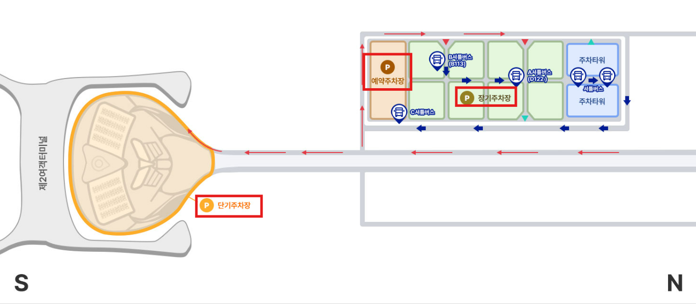 - 장기주차장: 터미널에서 조금 떨어진 곳에 있으며, 며칠(1일) 이상 주차할 때 적합합니다.